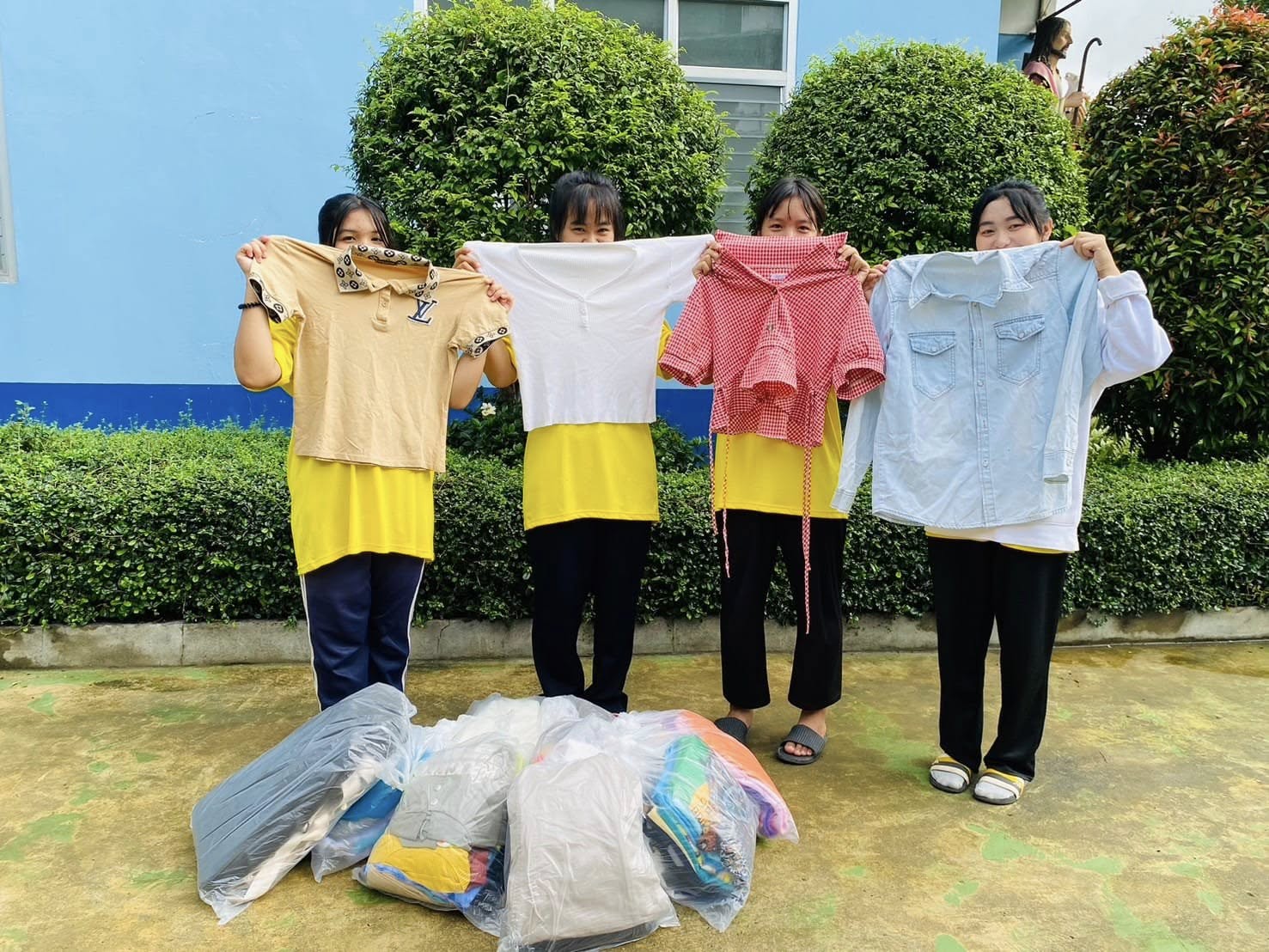 คุณหมอเล็ก และครอบครัว ที่ได้แบ่งปันเสื้อผ้าและของใช้