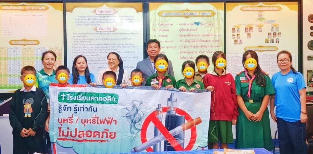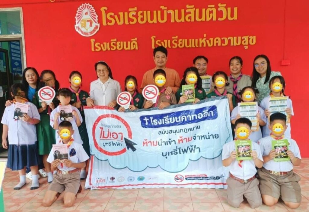 ซิสเตอร์อนุรักษ์ ไชยเผือก รองผู้อำนวยการสถานสงเคราะห์เด็กศรีชุมพาบาล มอบป้ายไวนิลและแผ่นโปสเตอร์ร่วมสร้างสังคมไทยปลอดบุหรี่และบุหรี่ไฟฟ้า ให้กับ โรงเรียนบ้านป่าบง , โรงเรียนเวียงห้าววิทยา , โรงเรียนบ้านสันติวัน